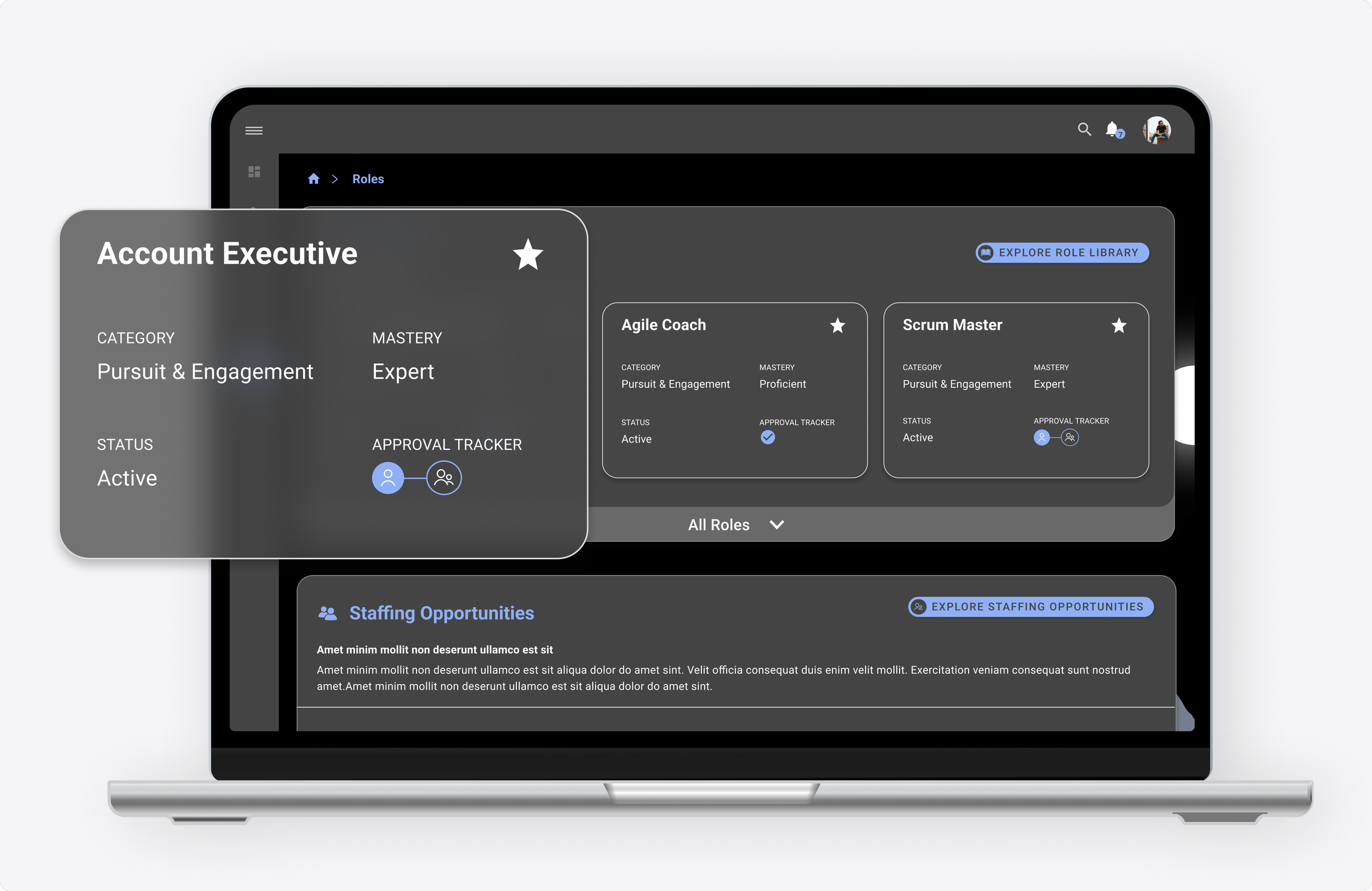 A global consulting firm's people-first culture was undermined by disconnected, outdated enterprise platforms that buried job-critical metrics and career data. The solution was a full UX research engagement and redesign of an internal talent management intranet, consolidating fragmented SaaS tools into a single, seamless experience with real-time visibility into user metrics, staffing opportunities, and career growth.